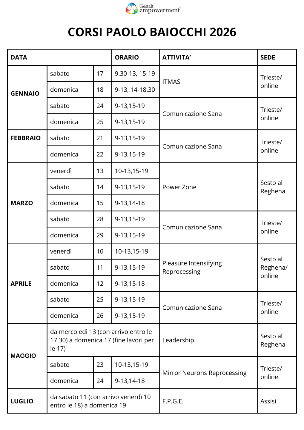 I CORSI 2026